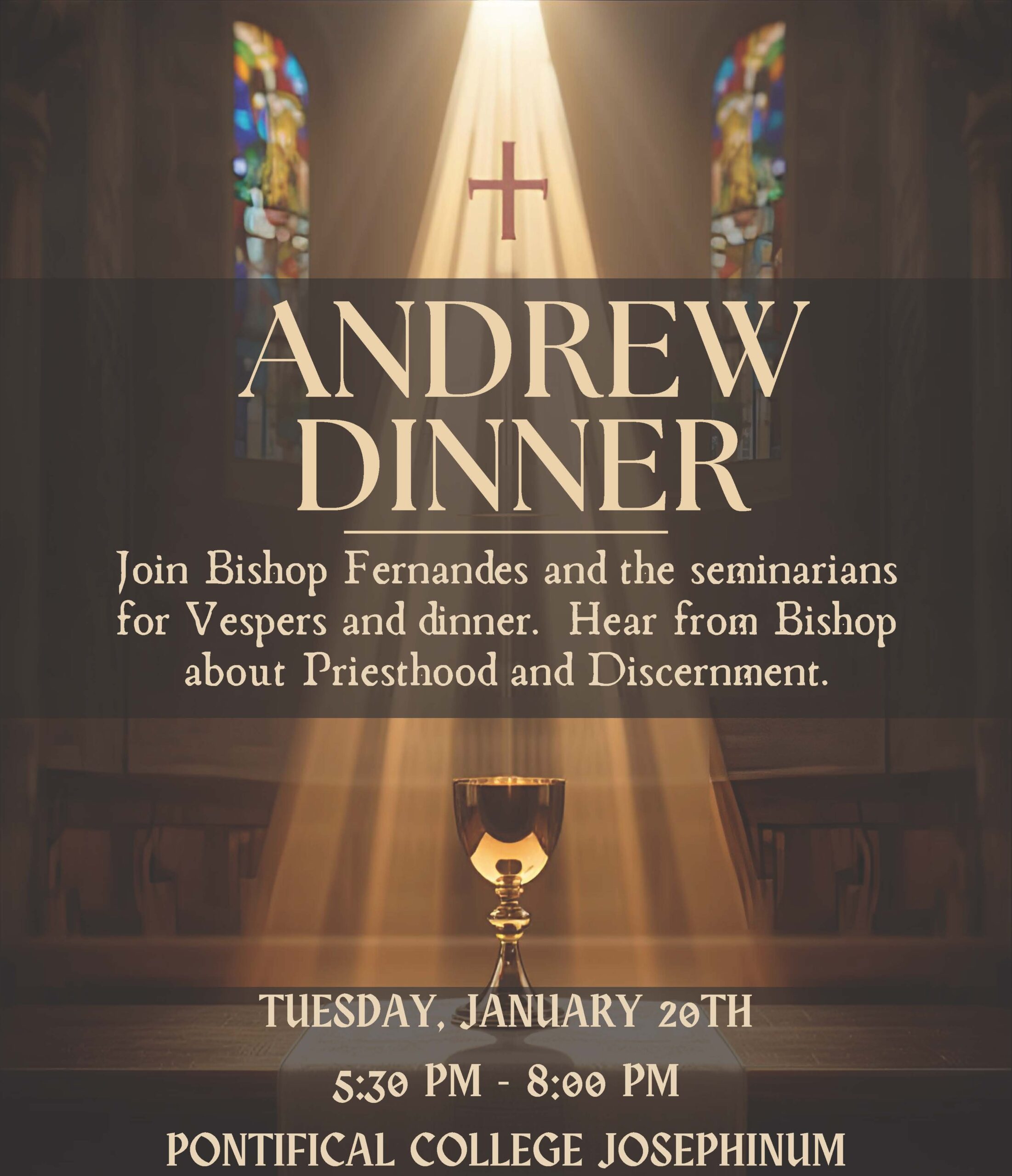 Calling all men! Interested in learning more about the priesthood? Join Bishop Earl K. Fernandes for the Andrew Dinner at the The Pontifical College Josephinum next Tuesday, January 20th at 5:30pm. RSVP at the link attached.