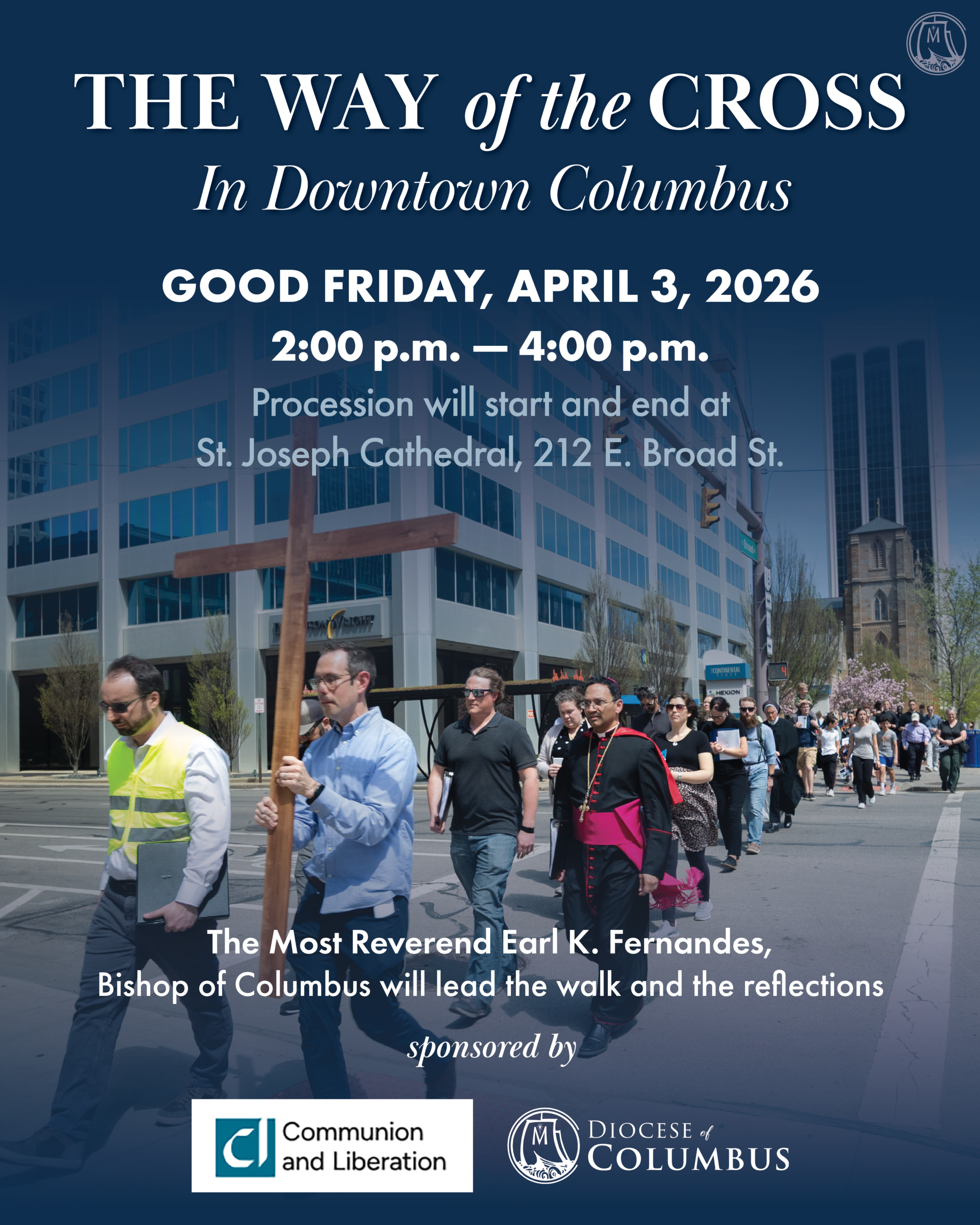 The Most Reverend Earl K. Fernandes, Bishop of Columbus, will lead the walk and reflections. The procession will start and end at St. Joseph Cathedral.